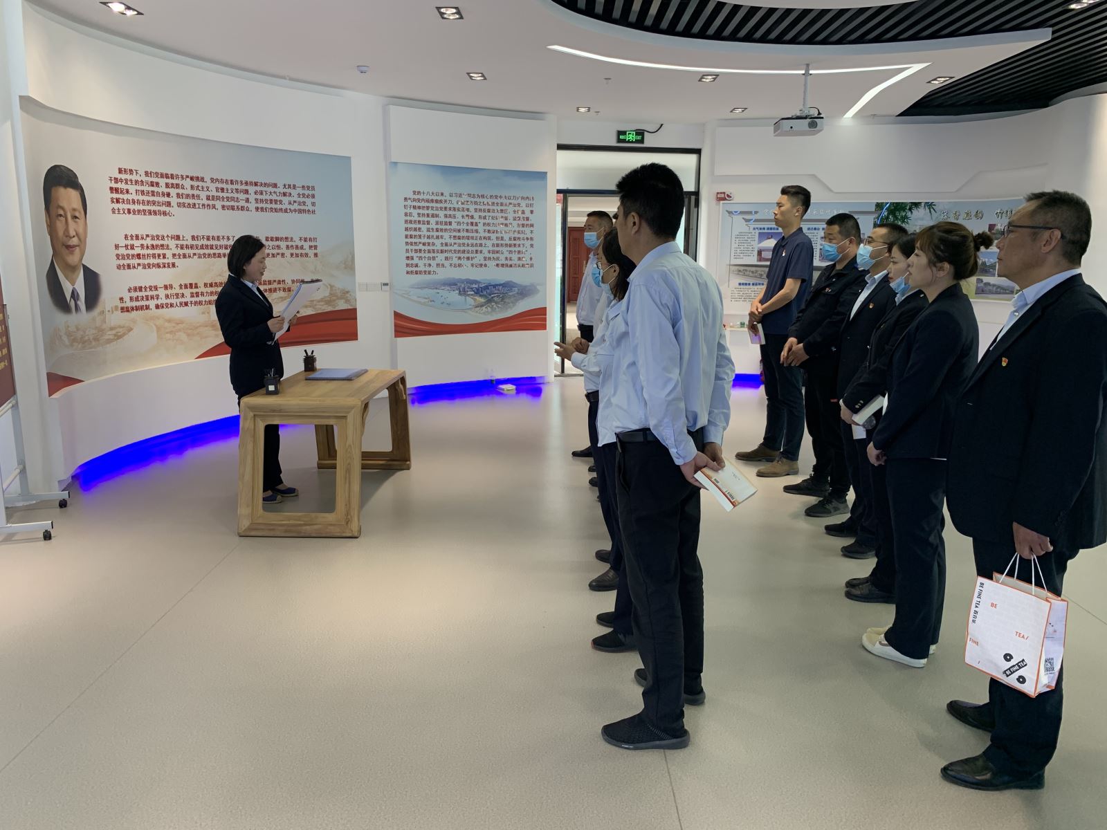 本次教育活動共有四個環節。首先由引導員帶領大家參觀基地,并詳細講解了警示教育案例。一句句發人深省的警句、一件件觸目驚心的案件,都讓在場的黨員干部深感震撼和觸動。參觀過程中,大家還一同觀看了警示教育專題片,通過身邊的典型案例,更加深切地了解了當前反腐敗斗爭形式。在這之后,進入第三個環節:重溫入黨誓詞。由支部書記王淑琳帶領黨員們重溫了入黨誓詞,堅定了為黨和人民的事業奮斗終身的決心。在此次廉政教育學習的最后一個環節,全體人員簽訂了廉政承諾書,承諾要時刻警鐘長鳴,用黨紀法規嚴格要求自己,不斷增強廉潔自律意識。
