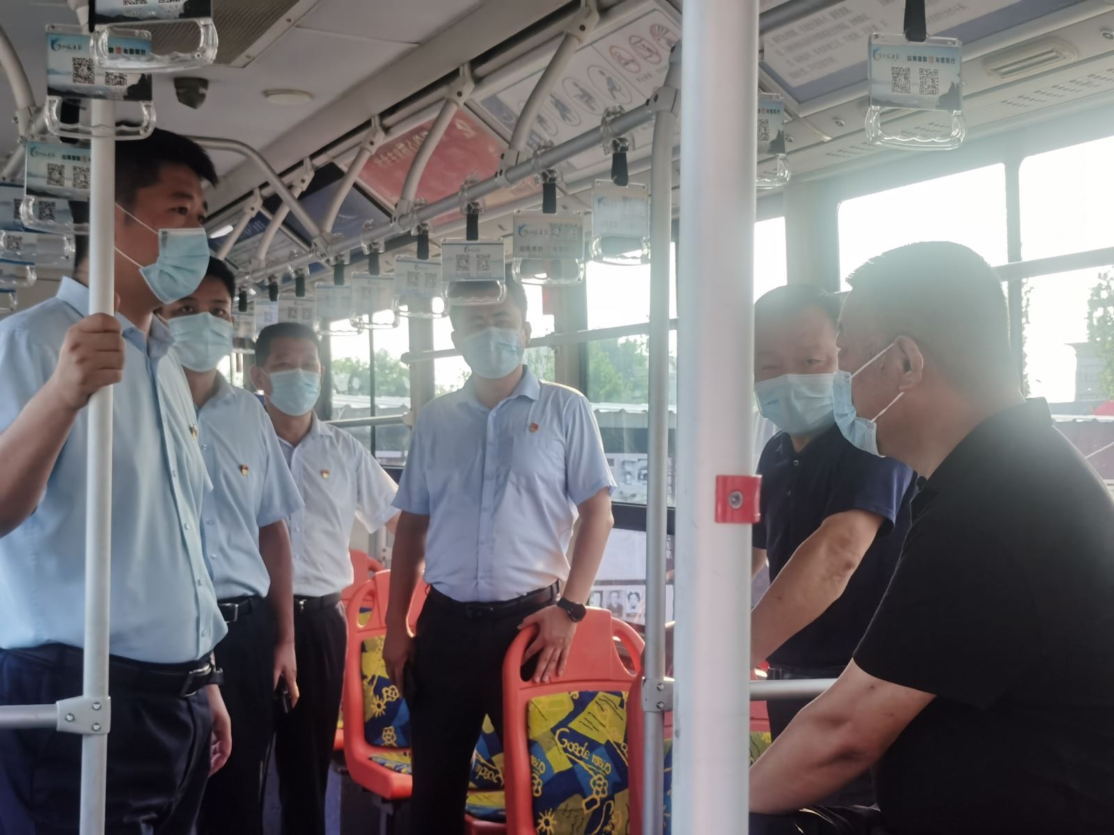 調(diào)研中,張海組長(zhǎng)一行來到公交集團(tuán)財(cái)校場(chǎng)站進(jìn)行實(shí)地了解和查看,首先聽取王學(xué)兵對(duì)公交廉潔文化建設(shè)工作開展情況和今后工作思路的介紹,接著參觀了公交15路、19路廉政文化示范車及“中共黨史文化墻”。示范車以“山海廉韻·與廉同行”為主題,車身外運(yùn)用連云港山與海的結(jié)合,寓意廉潔文化建設(shè)如同山一樣厚重、海一樣廣闊,彰顯港城廉政建設(shè)的獨(dú)有特點(diǎn)。車廂內(nèi)主要利用多媒體設(shè)備、拉手、看板、座椅等,多方位多角度的展現(xiàn)警句格言、廉政漫畫、本地清官故事等人文和廉潔元素,讓廉潔文化建設(shè)走進(jìn)市民乘客身邊,推進(jìn)新時(shí)代黨風(fēng)廉政建設(shè)和廉潔文化建設(shè)工作,張海組長(zhǎng)對(duì)公交集團(tuán)廉潔文化建設(shè)工作給予了肯定。