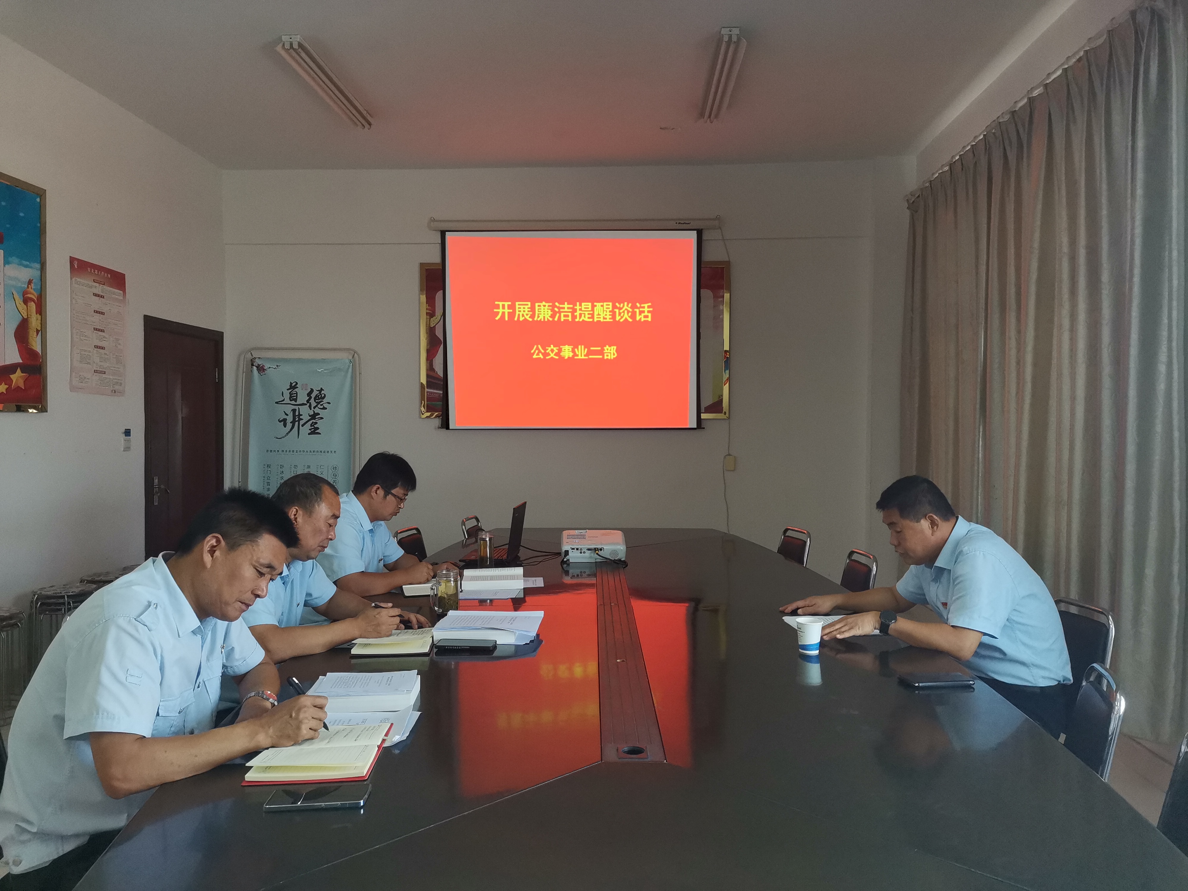 近期,公交集團在集團各級領導班子、中層干部、三級干部共107人中開展了廉潔提醒談話,督促領導干部嚴以用權、廉潔從業、履職盡責。