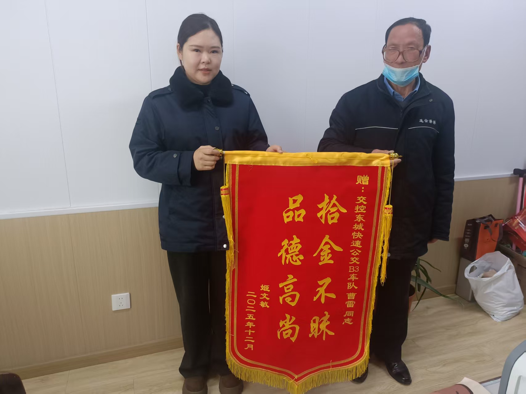 這面遲來的錦旗背后,是兩個普通人之間溫暖的互動:一位是盡職盡責(zé)的公交駕駛員,一位是孝順感恩的普通市民。在這個冬日里,他們的故事如暖流般溫暖人心,彰顯了城市文明的新風(fēng)尚。
