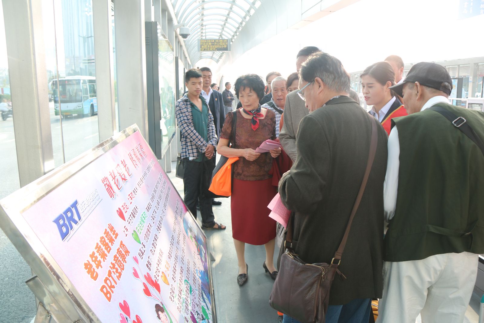 來源:快速公司 作者:周健 公交快速公司結合安全工作實際,公司工會和安全科聯合開展了“老年乘客乘坐BRT注意事項”主題宣傳活動,制作了專題展板,以實際行動表達對港城老年乘客的關心和祝福。 10月18日下午,工會及安管人員共8人走進BRT龍河廣場站,開展宣傳工作,給乘客講解老年乘客乘坐BRT注意事項,耐心回答老年乘客提出的乘車問題,收集他們對BRT的意見和建議。宣傳活動主要圍繞以下四點:一是進站、上車時老年卡、老年優惠卡專卡專用。二是在站臺候車時,車輛進站,站臺安全門和車門同時打開后,注意認清車次后再上車,防止被車門或安全門夾住;在上車時特別注意腳下,防止踏空摔倒;上車時最好選擇從前門上,這樣駕駛員會看到老年乘客上車,會給予特別關注。三是上車后,快速找到空座位做好;找座位盡量找平座位,最好不要上臺階;如無空座位,走到車廂中間后抓好扶手,特別是車輛啟動后,切忌在車廂中間來回走動;防止因車輛陡然急剎而摔倒;如有特殊需要,可告知駕駛員,尋求駕駛員幫助。四是即將到站時,注意提前做好準備,待車輛停穩后下車;切忌在車輛即將關門時“沖”到門口下車。 隨著公交線網的不斷擴大,選擇公交車出行的市民越來越多,老年乘客的比例也在不斷增加。敬老愛老是傳統美德,讓老年乘客方便、安全的出行,是我們公交人對老年人實實在在的關愛。