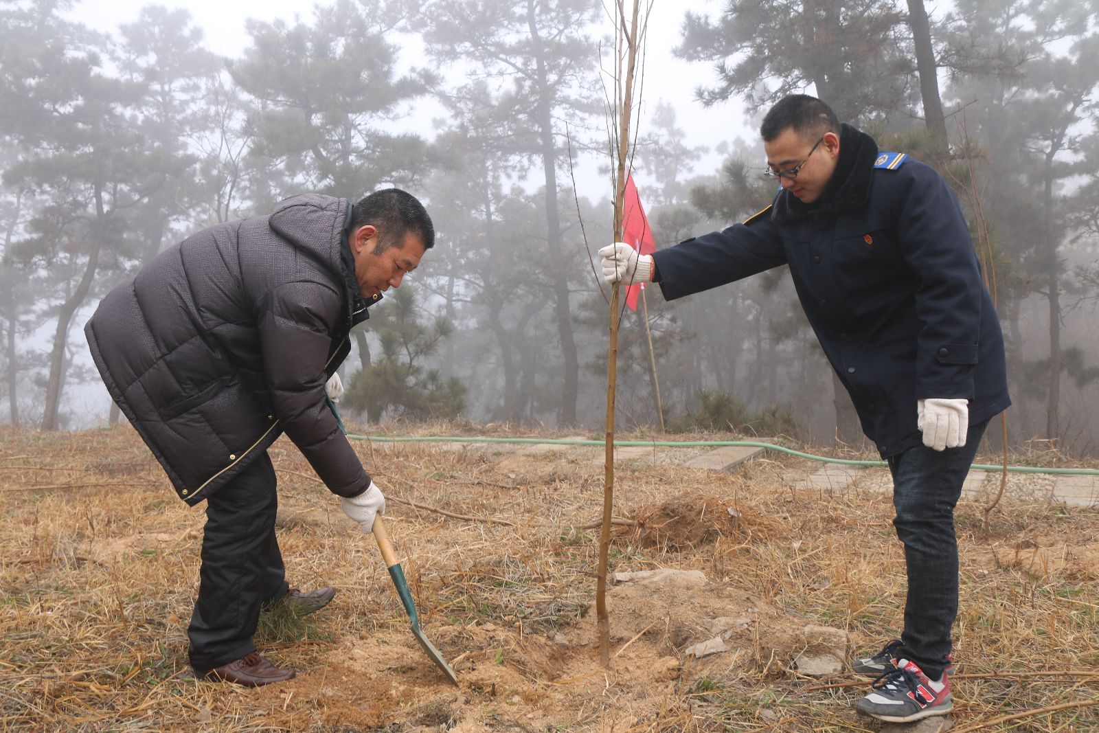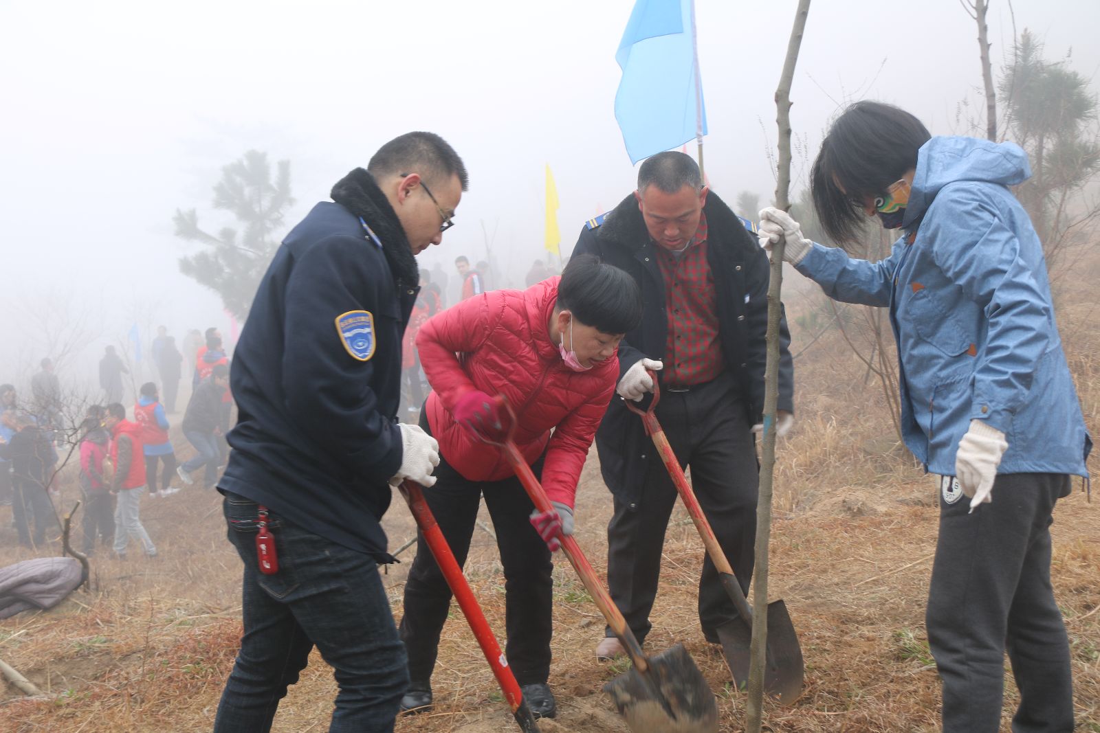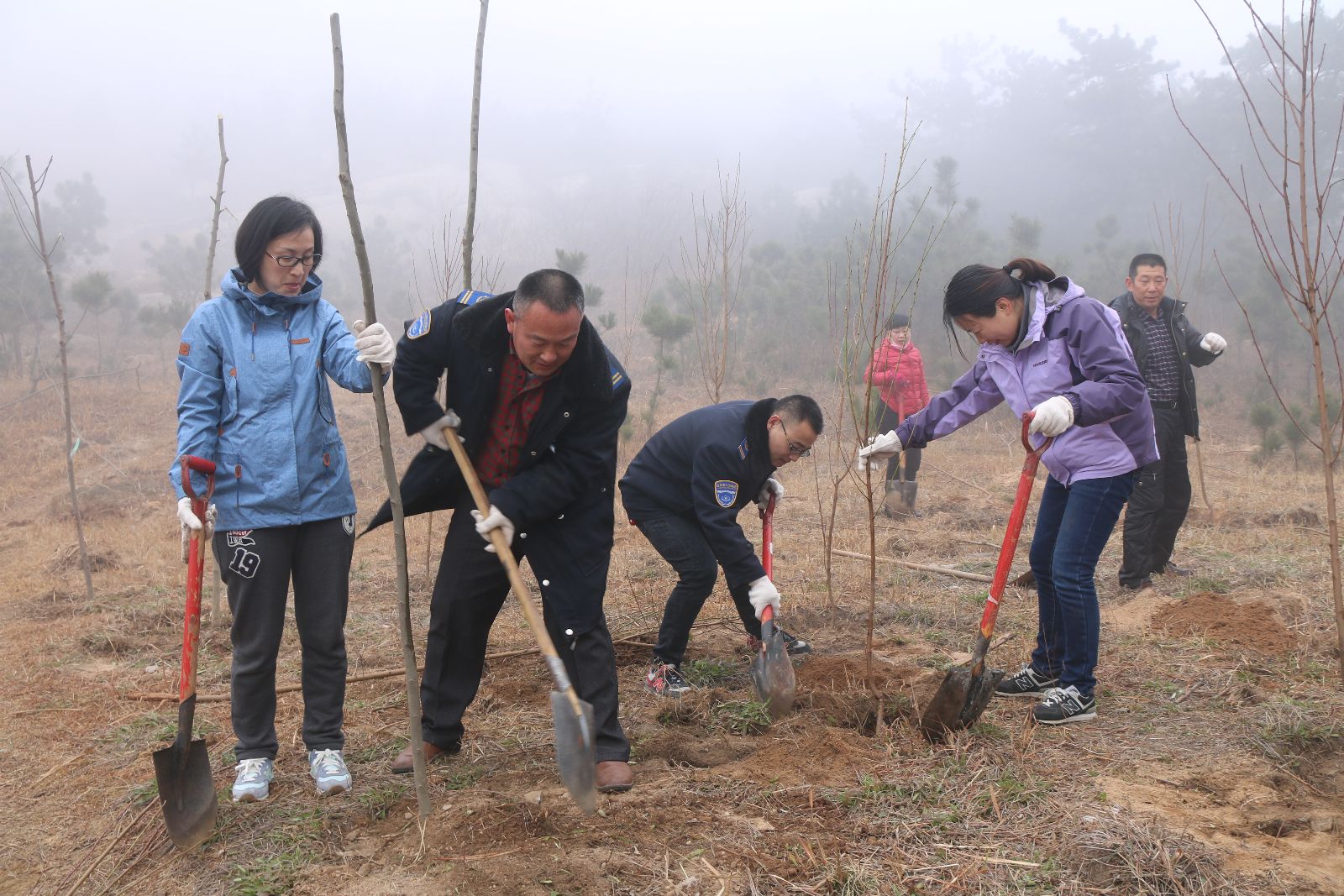活動現場,志愿者們分工協作,你挖坑、我扶樹、他填土,一片熱火朝天的勞動景象,植樹活動開展了2個多小時,共種植四十棵小樹苗。黨員志愿者們認為能為大美港城增添一點綠色,都感到十分開心,增強了大家愛綠護綠的意識。