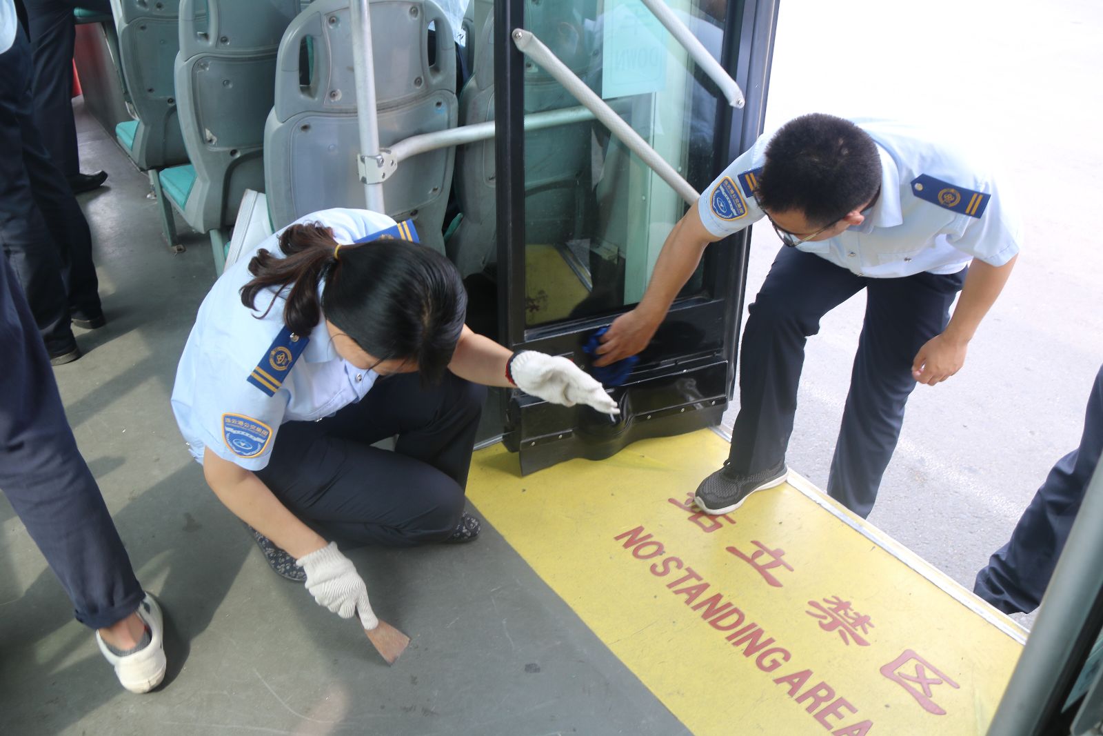 公交快速公司黨支部根據上級黨委“關于組織開展紀念建黨96周年系列活動”的文件要求。為增強黨員服務意識、改進服務作風、提高服務水平,踐行黨員“微服務”。6月30日下午,公交快速公司黨支部組織20名黨員志愿者,在海州客運站集中開展B12線車車廂衛生清掃清潔志愿服務活動,黨員們用海綿清洗裝飾板上的污垢,用鏟子鏟除車內地板上的口香糖,擦洗車頂空調濾網處等等,不放過每一處衛生死角,積極營造真抓實干的良好氛圍。