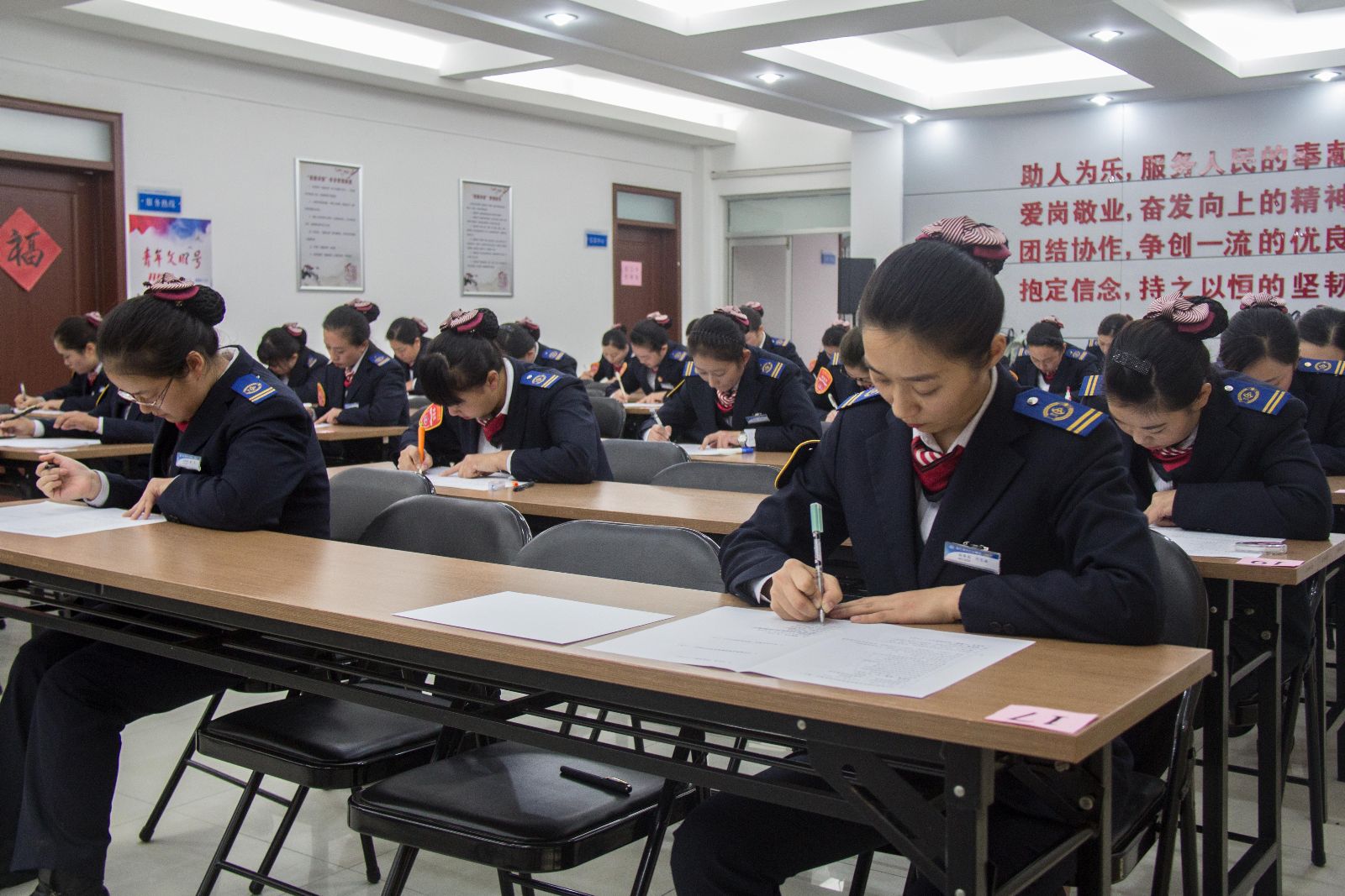 10月26日下午2:30,30名通過前期選拔賽的站務員參加了理論考復賽,考試現場紀律嚴格,每一
