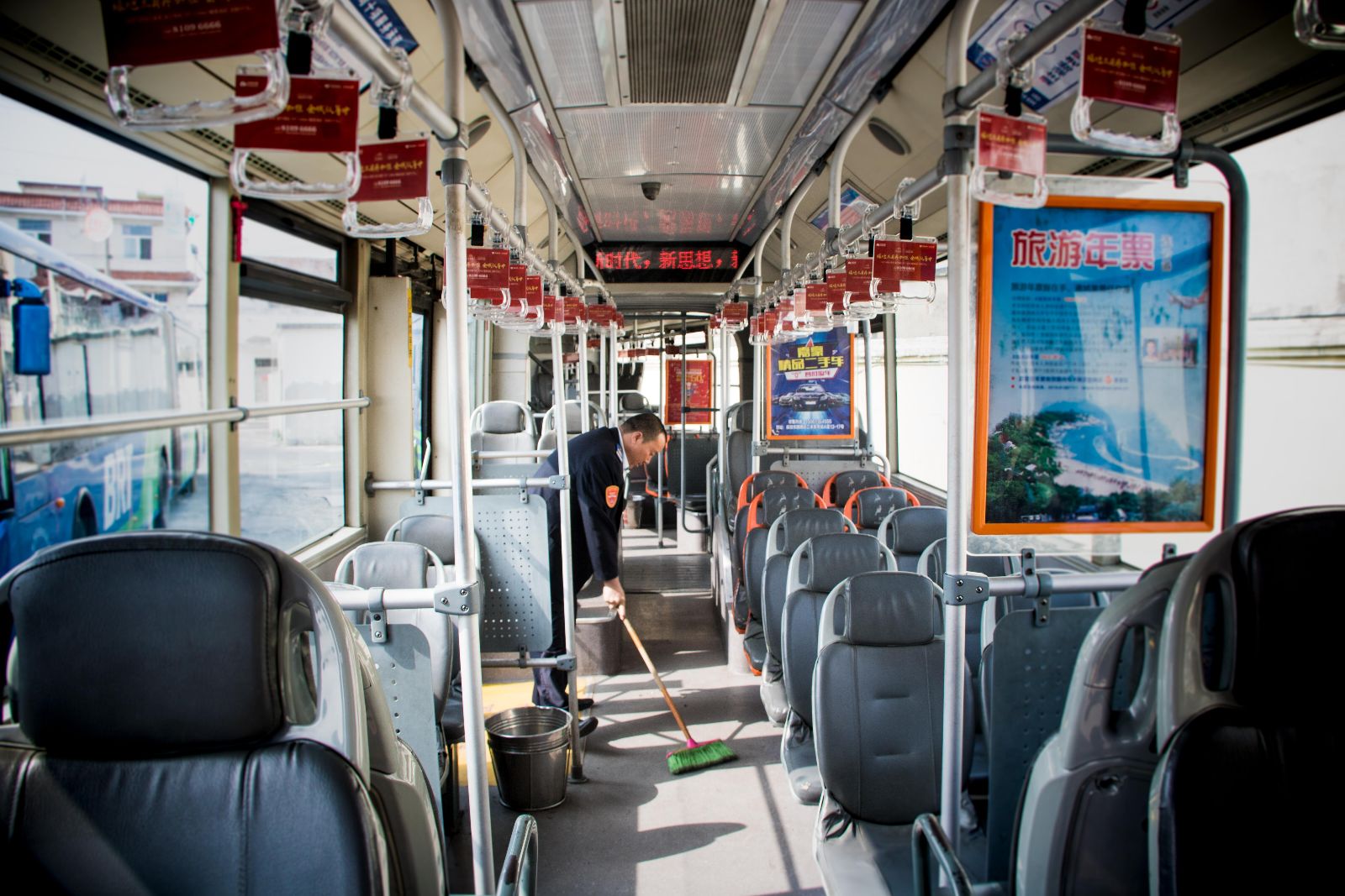 一趟線路跑完,將車輛外面的灰塵擦拭干凈,保證車廂內外衛生整潔;