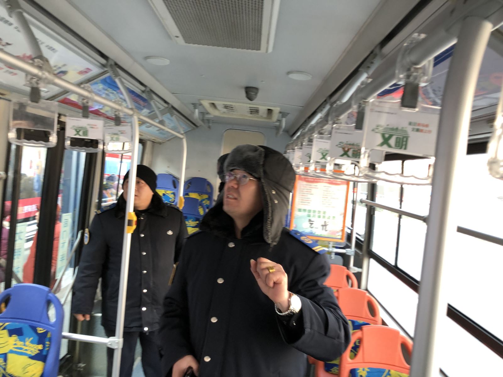 公交集團公交事業(yè)一部部分管理人員組成檢查小組,對車容車貌、車輛安全技術狀況、車載設施設備、駕駛員“三證”、標語標識等項目對照標準,逐項核查,督促駕駛員做好行車前、行車中、收車后的三檢工作,完成好車輛日常維護。