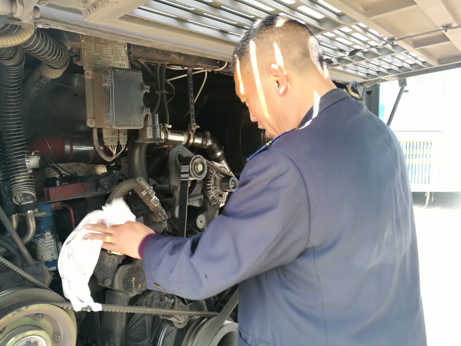 近日,公交集團(tuán)快速公交事業(yè)部組織駕駛員對(duì)車(chē)輛發(fā)動(dòng)機(jī)開(kāi)展再次清洗工作,發(fā)動(dòng)機(jī)清洗工作看似簡(jiǎn)單,由于車(chē)輛運(yùn)營(yíng)時(shí)間長(zhǎng),高負(fù)荷運(yùn)轉(zhuǎn),道路通行條件差,油污長(zhǎng)期積累在縫隙中很難清理干凈,必須長(zhǎng)期、定期清理。