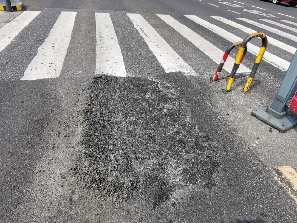 經過夏季太陽的高溫炙烤和雨水的浸泡,公交車行經的瀝青路面的強度會降低,BRT站臺又是公交車剎車和起步比較集中的區域,在多方面的作用下,瀝青路面產生了起鼓現象,導致部分路面變形嚴重,路面起鼓的地方甚至高出路面十幾公分,容易剮蹭底盤、刮壞儲氣筒,導致車輛拋錨,對車輛運行造成極大的安全隱患。