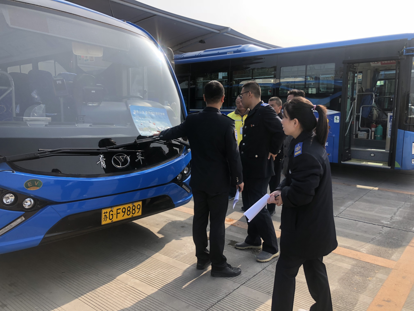 為確保創文工作順利開展,11月8日,公交集團綜合管理部、安全保衛部、生產運營部、人力資源部、機務技術事業部和紀檢監察室組成六人創文督查小組。上路上線對香溢公交停車場、海州客運站、植物油廠停車場、江化北路停車場、BRT西城公交總站、財校停車場、火車站公交始發點、BRT東城停車場、園丁小區停車場、大港路停車場、連云古鎮停車場共11個場站、以及部分公交車和BRT站臺開展創文專項檢查,督查組對照《連云港市創建文明城市實地考察點位創建重點》,檢查公交場站“門前四包”情況、公交車及站臺的文明宣傳、設施設備和衛生情況、駕駛員及站務員對《創建全國文明城市應知應會知識》的掌握程度、儀容儀表和服務情況。