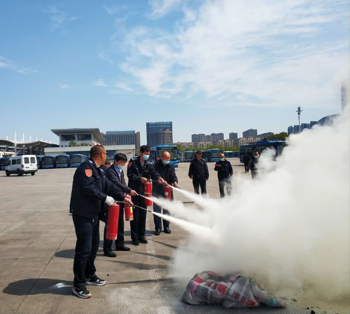 公交車作為重要的公共交通工具,消防安全一直備受社會關注。2020年4月27日,快速公交事業部東城分公司利用前期更換的舊滅火器,組織駕駛員開展了一場消防滅火實戰演練。