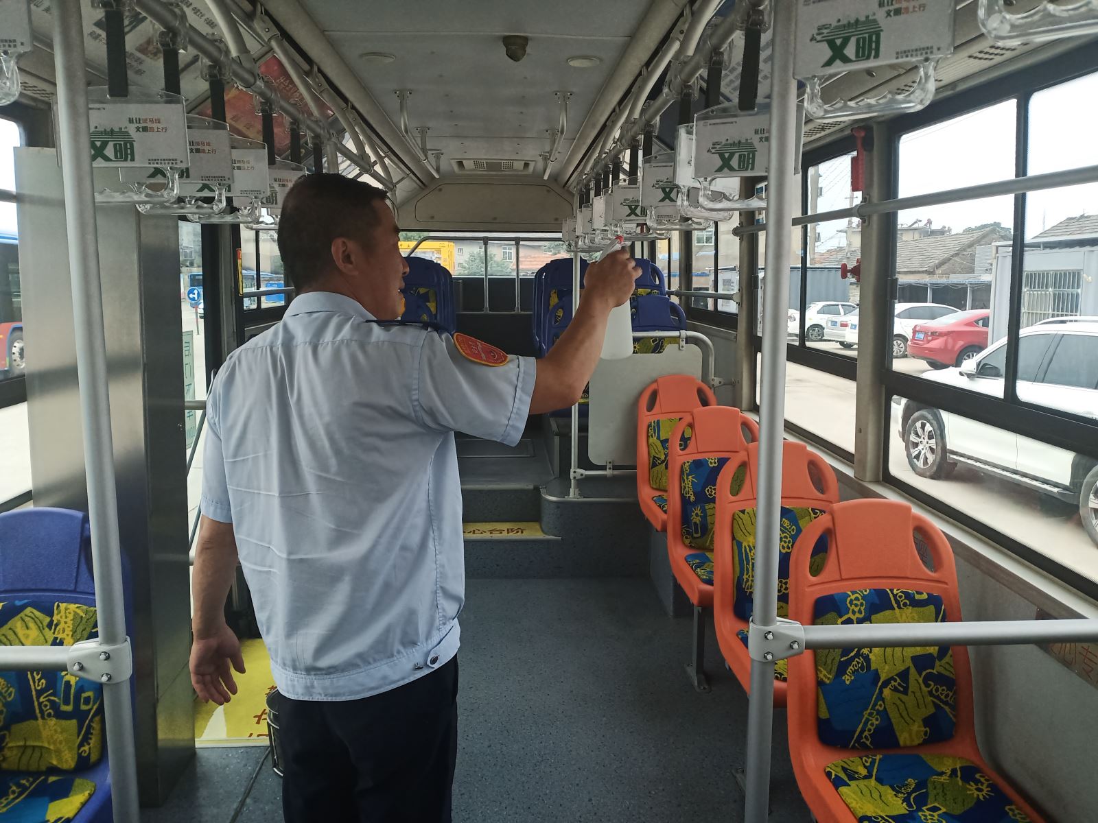 為了給乘客營造一個干凈、健康的乘車環(huán)境,駕駛員在第一時間為愛車“清洗”,首先利用洗車機將車身外部清洗干凈,然后對車廂內部進行打掃,擦拭駕駛室內的衛(wèi)生死角,拖地板、擦玻璃、座椅、扶手等。為確保疫情期間做好防控工作,還要對車內進行消毒,并打開門窗通風透氣。