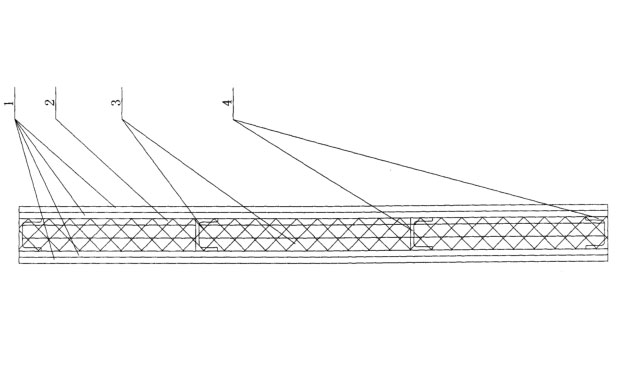 為了解決背景技術所存在的問題,特采用以下技術方案:它包含纖維硅酸鈣板1、第一巖棉層2、第二巖棉層3、和豎龍骨4;豎龍骨4兩側分別設置有兩層纖維硅酸鈣板1,外側的纖維硅酸鈣板1內(nèi)設置有第一巖棉層2,兩層纖維硅酸鈣板1中間設置有第二巖棉層3。