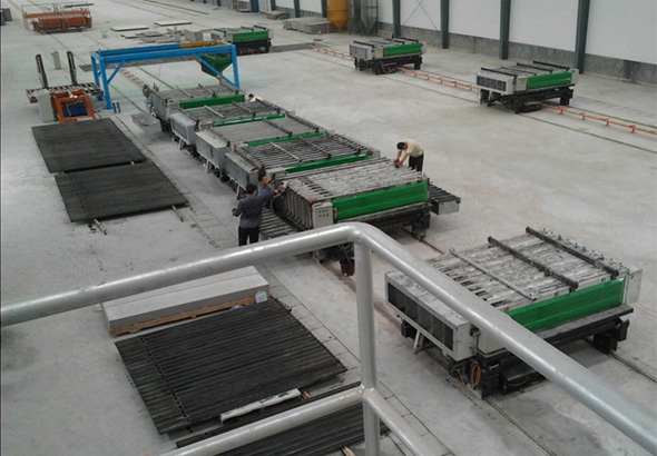 M08復(fù)合墻板生產(chǎn)線屬于流水作業(yè)連續(xù)式生產(chǎn),震動(dòng)落料成型,全自動(dòng)電加熱,模板液壓系統(tǒng)開合,端模液壓系統(tǒng)開合,板長(zhǎng)自動(dòng)調(diào)整,上榫槽自動(dòng)壓合搓抹成型。整條生產(chǎn)線布局緊湊、工藝簡(jiǎn)單,生產(chǎn)效率高,不污染環(huán)境,周期縮短,熱損耗小,節(jié)能效果很明顯,也是國(guó)家大力支持的節(jié)能環(huán)保墻板生產(chǎn)線。